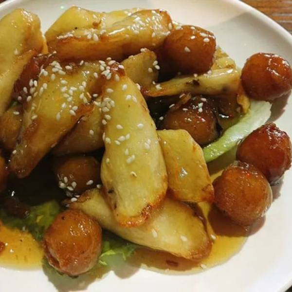 这道蜜汁长山药是在古城南大街名叫天元奎的一家饭店吃到的,足以惊艳人的味蕾,再配以白芝麻,唇齿之间更是香味儿十足。