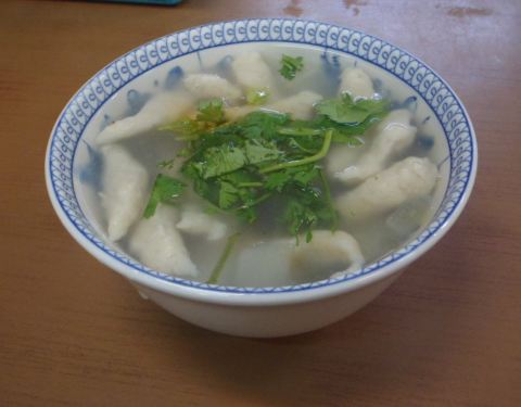 第一次吃这么正中的鱼羹,连汤都是那么的鲜美,加上绿色的香菜和银色的豆芽,整整一碗连汤一起喝下。