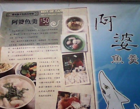 (十二) 阿婆鱼羹在九份老街的入口处,几乎一眼就能望见;如同从鱼羹二字一转念几乎就能想起素手调羹汤。 虽然阿婆老了,但当年也是如玉素手。阿婆叫阿云,这个名字是否能联想白云飘飘? 阿婆鱼羹又称“阿云传统切仔面店”,或“阿婆鱼羹鱼丸”。 素手阿云在五十年代开店,去市场买来新鲜鲨鱼,将鱼肉搓成长条形鱼羹,放入滚汤,数十年亲手制作……阿云小妹如今成了阿云阿婆。 鱼羹味道不错,鱼丸也蛮Q的。 闽南语音中的Q这个字也不知怎么用汉文某字替代,弹性十足吧。 随旅游业发展,店里也有其它当地简食,如魚羹麵、乾麵、卤肉饭。 于我心中,海峡另一边的福州,福州鱼丸也喜欢。 例如三坊七巷永和鱼丸店里的“五福临门”,其中的鱼羹鱼丸一直是最爱的地方小吃之一,百尝不厌,百试不爽。 一念之下,记得有关羹汤、调羹的古诗词有二首: 唐·王建《新嫁娘词》:三日入厨下,洗手作羹汤。未谙姑食性,先遣小姑尝。 宋·陆游《初冬绝句》:自古达人轻富贵,倒缘乡味忆回乡。鲈肥菰脆调羹美,荞熟油新作饼香。