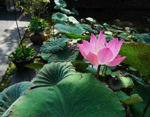 这家店唯一的优势就是餐厅中间的莲花池塘。我们4月中去的,莲花开的很不错。第一排的位置很好,离莲花池很近。 莲花池右侧的一排位置都是榻榻米的形式。
