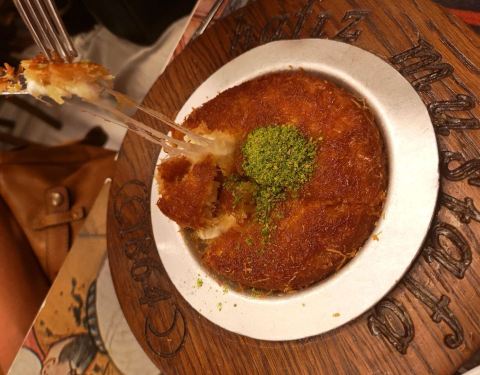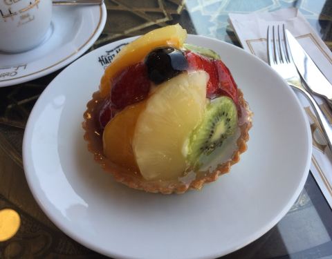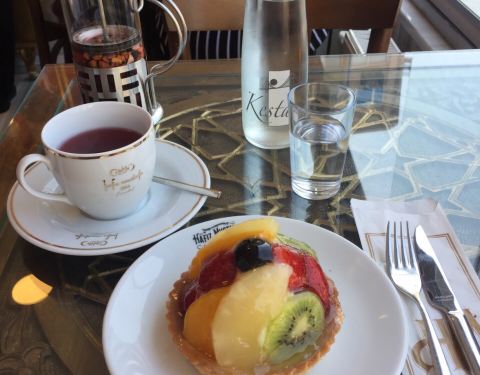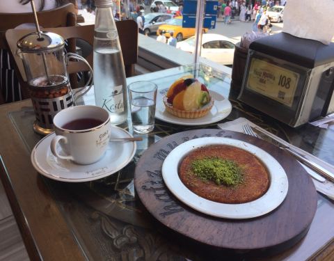 不得不说土耳其真的是甜品的王国,爱好甜食者的天堂,世界上居然会有这么好吃而且还不怎么贵的甜品(当然了土耳其软糖倒是不便宜) 从苏丹艾哈迈德清真寺到这家店只有两站有轨电车的距离,中午往后店内的位置真的是一座难求,从外观来看最抢眼的就是橱窗,橱窗里摆的密密麻麻的玻璃碗装的布丁,摆盘精美的土耳其软糖。出了在门外有三个位置,别的位置都在楼上,一层来买甜品的人相当多,生意非常好。 推荐超美味的开心果芝士酥饼(大概是这么翻译),需要分到一段时间,热热的甜品就上桌了,绝对是芝士爱好者的福音,切开之后都是拉丝,超好吃。(13还是16里拉,忘了) 布丁的话甜的发腻,完全沉浸在美味之中 再来一杯苹果茶,爽~ 对了对了,还要再推荐水果挞,晶莹剔透,漂亮又好吃