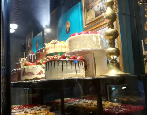 就是个网红甜品店,俗称土国“稻香村”。你说好吃吧,又还真不如咱北京稻香村好吃,就是图个新鲜,买了好多苹果茶还有巧克力糖,当伴手礼带了回来,同行的姐妹儿说苹果茶喝了一口直接整盒扔了,感觉也就那么回事儿,我自己买的巧克力豆到现在也没吃完,因为真的是太甜了。当时坐那儿还要了一个巧克力蛋糕,也巨甜,热量还挺高,不过低血糖的姐妹儿吃完瞬间满血复活!