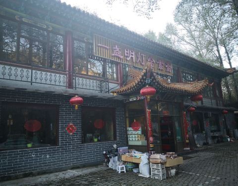 ...明灯,路过的时候一下子就看见了,就在殊像寺不远的停车场,外面是一栋仿古建筑,有点孤单,菜品不错