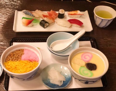 吉宗定食2,376円なり。蒸し寿司、どんぶりサイズの茶碗蒸しがうまし。