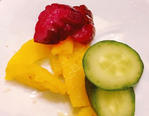 晚餐有招牌的黑毛猪涮涮锅,但需要提前电话预约,且不能迟到太久(30分钟内),否则就取消了。黑毛猪有对应的不同套餐可选,差别是不一样的搭配小菜,另外单点的一些特色菜不用预约就能吃到。话说这家的黑毛猪肉确实很赞,不用沾任何调料,肉有一点甜味,很新鲜量也挺大,酒水和配菜也都不错,服务也好,推荐~