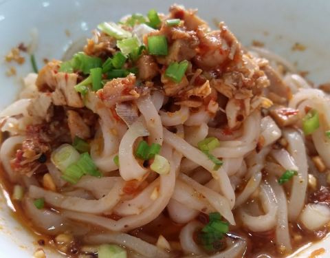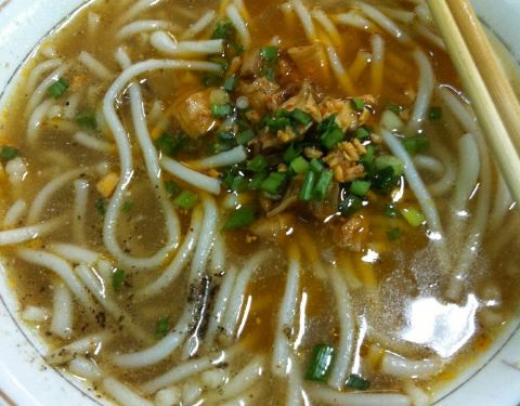 先纠错,没有鱼汤米线,都是猪肉和鸡肉的,有带汤的和不带汤的,味道很好! 炸豆腐很一般。面普遍不错!