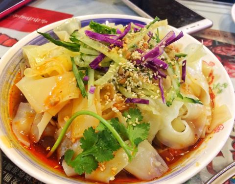 调味偏辣,非常的正宗。口感比较合适,劲道但还能咬断。酱香的,很入味