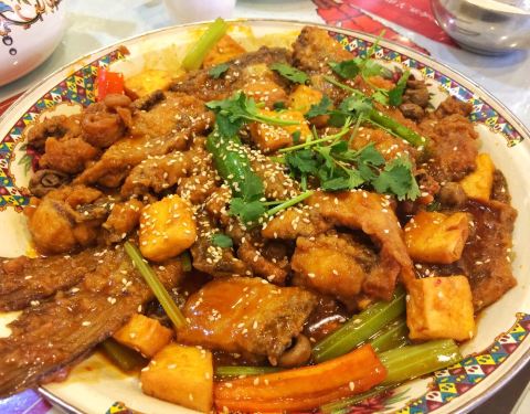 离家很近,去过多次,口味和在新疆吃非常接近,不担心食材造假,份量非常大,一家三口一个大盘鸡搞定!每次去基本一到两个菜,推荐羊羔肉!图片以后再补吧!