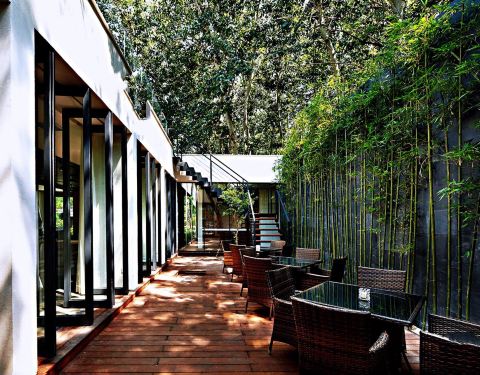 - 环境特别好,尤其夏天时候绿化很棒,满眼绿色,餐厅是玻璃构造能够看到公园景色,吃的不错,是参加活动来的