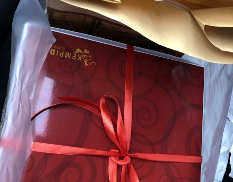 双十一抢到半价的生日蛋糕,因为儿子正好要用。很良心的价格,198两磅。今年生日和老师同学分享总共买了六个生日蛋糕,凯宾的这一个最后反映是最好吃的。 取蛋糕的时候遇到一点麻烦,从收银员到几个店员,都不知道要从哪里找出来我微信上抢到的二维码,还要打电话去另一个部门问,最后有一个店员帮我翻出来,谢天谢地。 顺带买了碱水面包,muffin以及牛角包,还是一如既往的好吃。