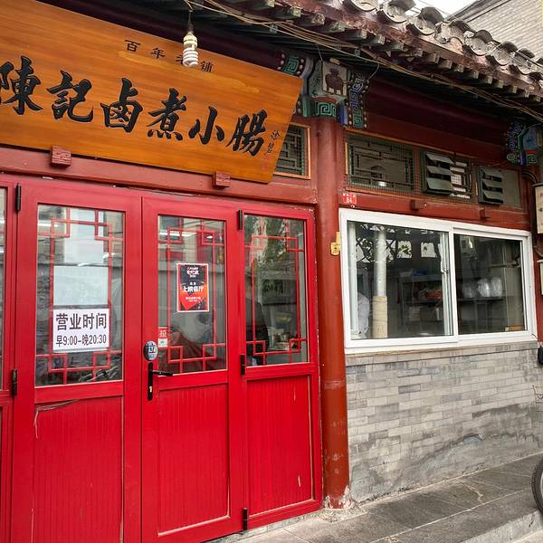 - 吃过午饭去逛大栅栏,不知怎么就转到了这个陈记卤煮小肠。中午一点了还有不少人在排队,生意兴隆啊