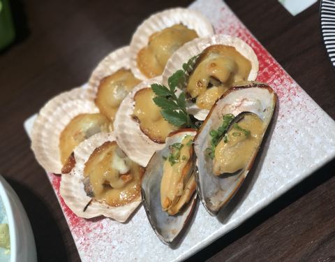 - 蒜蓉蒸牡蛎,天妇罗,炸鲑鱼圈非常好吃,点赞了。海鲜拼盘套餐里的大虾和三文鱼搭配不错