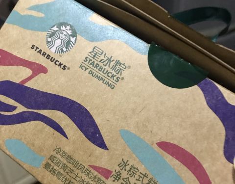 星巴克的冰星粽严格意义来讲并不是粽子,而是一种点心甜品,晶莹剔透的水晶模样的小粽子,隐隐约约透出里面的颜色,黄的粉的棕色的。