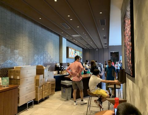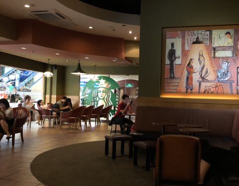 ...C座一层,进口就是,招牌明显,知名度最高了,哈哈 【环境】客人一多,星巴克里也是各种坐满的节奏