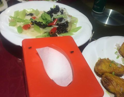 看看这苍蝇你还有胃口用餐吗!