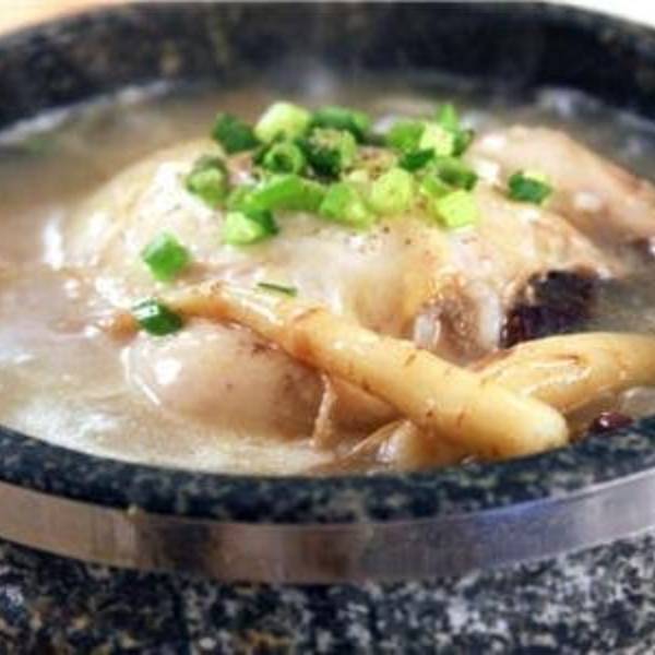 鸡汤有淡淡的中药味,非常烂,鸡肚子里还有糯米吃起来很香,到最后比较像粥的感觉~很棒!除了参鸡汤,他家的人参酒 、泡菜、海带、糯米、小菜等都可以尝试下哦! - ...然味道,沾着椒盐白胡椒粉什么的,味道很不错的,还有我特别喜欢他家的炸花生米,脆脆的,还给了不少