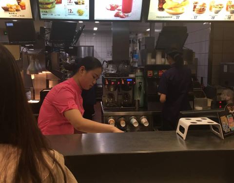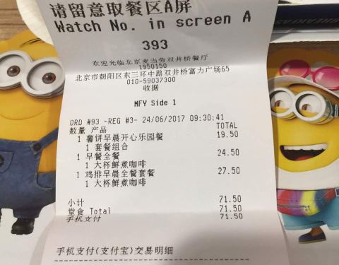 双井富力城负一楼的这家麦当劳是第一次吃,之前看到过的点评基本都在现场得到了印证。自己的感觉是服务很好早晨的时候吃早餐的人不少,但还是有不吃不喝干坐着甚至趴在桌子上睡觉的,这些人都是等十点商场开门的,估计店员都认识的。食物不错,但是所有的厨房都不能看就不具体说了。