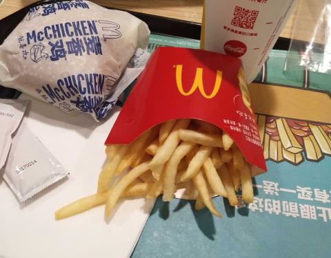 中午想吃麦当劳,但是国贸的和永安里的麦当劳都关门了,最近的就是富力广场的这家店,这家店的位置其实还是比较方便的,在地铁双井站附近,门前也有57路公交车等,因为这家店是富力广场的底商,所以开车前往的话可以将车停在富力广场,停车位倒还是是充足, 不过门前的路有的时候会堵车,这一点是比较头疼的,这家店附近的写字楼和住宅区都不少,所以平时的中午以及周末都是这个商场的高峰,我们中午错开高峰点去的,人倒是不多,家店在地下一层,不过楼上有个甜品站,可以从甜品站下去,这家店不算是很大,要是赶高峰的时候可能会没有座位,平时的时候除了有吃饭的人,还有很多在这里休息的,店内分为自助点餐机和人工点餐,这个现在基本上每一家麦当劳都有,但是这家店比较明显的是自助点餐机的人要比人工点餐少了很多,基本上不用排队,很快就能取餐,非常方便,餐厅的服务员态度不错,就算是在客流量高峰的时候,收拾桌面的人也能很快的将桌面打扫赶紧,以便我们能够有更多位子可以选择,麦当劳这几年的价格不断再涨,人均消费在30元左右吧,味道和以前一样没有太大的变化,汉堡要比之前的小了很多,这家店的大薯条给的还是挺多的,长时间不吃快餐还是可以来吃一吃的,推荐小牛奶,用小牛奶代替可乐。