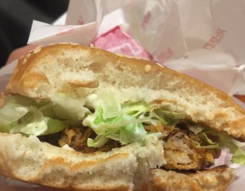 人太多,不好找位。外带到办公室吃的,还是我最钟爱的辣堡!