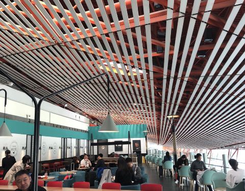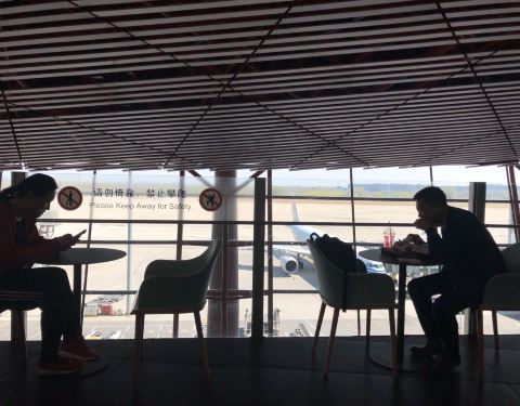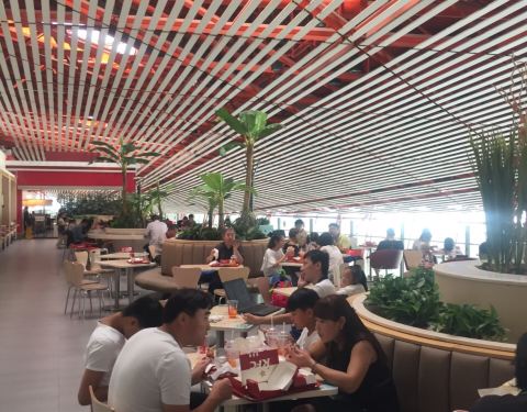 ...楼国际出发候机大厅,餐桌不是很多,不过大多数客人都是打包外带,遇到出港高峰时段人很多,需要排队