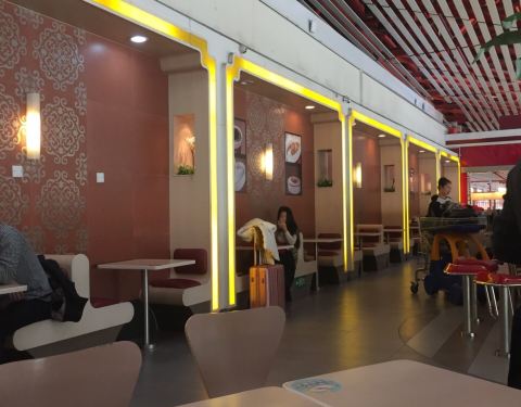 餐厅位于首都国际机场T3航站楼国际出发候机大厅,餐桌不是很多,不过大多数客人都是打包外带,遇到出港高峰时段人很多,需要排队