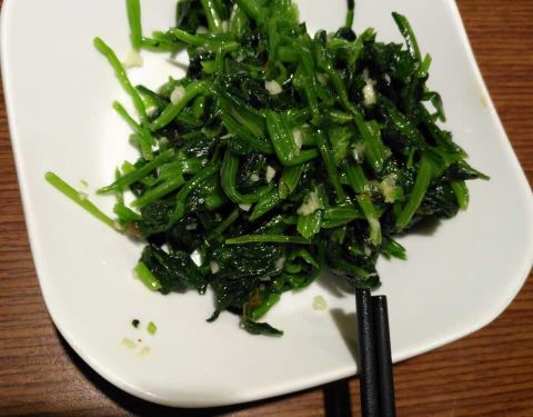 好久没时间过来吃了,点了爱吃的芥末菠菜不放芥末,一碗排骨面,还是当初的味