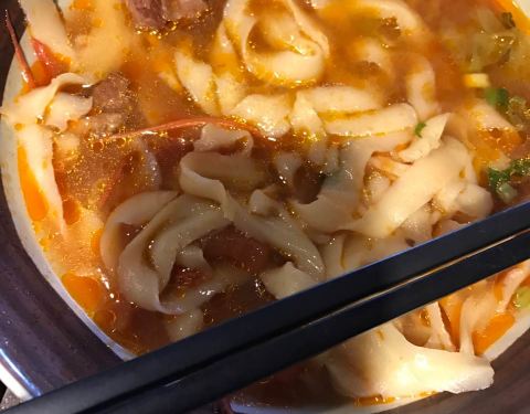 劲道的刀削面,美味的西红柿牛肉面!