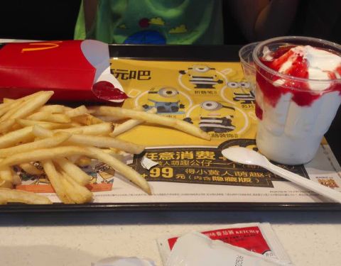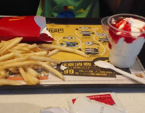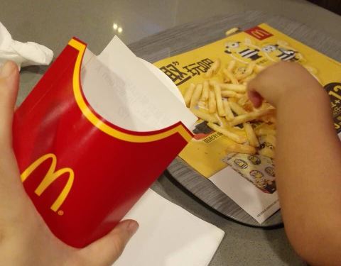 麦当劳大薯搞活动,买一送二,不过要空盒续,可以先要个纸袋,然后倒进去续。我跟侄子犯傻吃完一个又吃一盒来续的,撑死了