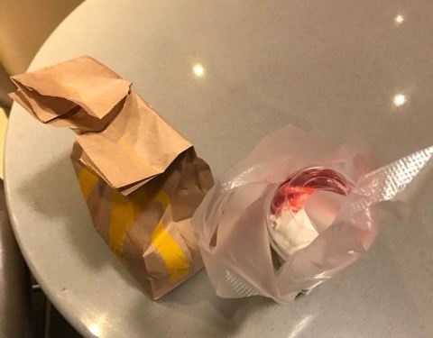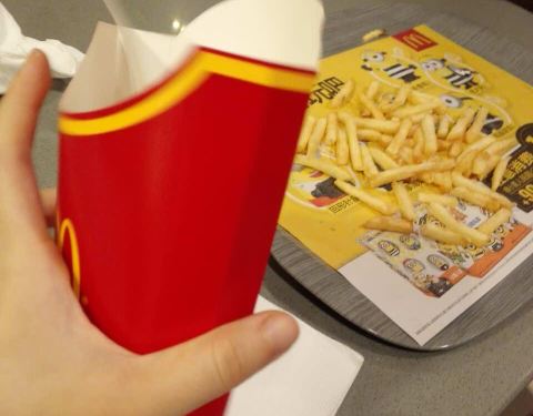 - 麦当劳大薯搞活动,买一送二,不过要空盒续,可以先要个纸袋,然后倒进去续