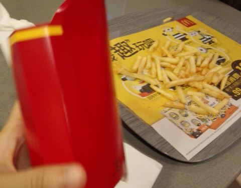 麦当劳大薯搞活动,买一送二,不过要空盒续,可以先要个纸袋,然后倒进去续
