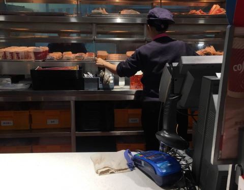 还可以,公司附近不远,早上8点半环境人不太多,口味还是一样的口味。就是有点热,没开空调