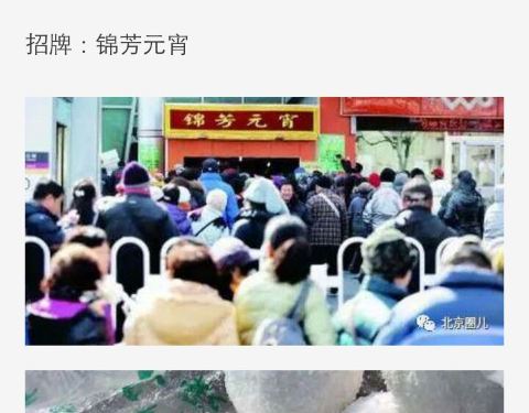 锦芳小吃店创建于1926年,该店原址在崇外大街,1996年因道路扩建迁至天坛路,1998年在崇外大街又开设了一家锦芳小吃分店。锦芳小吃店主要经营清真小吃,如糖火烧、艾窝窝、麻团、一品烧饼、奶油炸糕等。店里的拳头产品是什锦元宵,作为北京元宵中的名品,每逢元宵节,锦芳门前就会排起长龙,成为老北京一景。探其原因就是锦芳的元宵好煮易熟,开锅就浮于水面,熟后长个,皮松馅软,黏韧适宜,而且还香甜不腻。