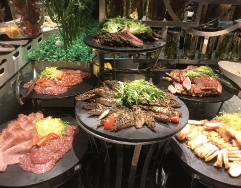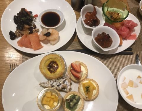工作日午餐和刚开业相比,口味下降,没有星级酒店的精致感。品类提高,好久没来发现菜怎么这么多,竟然还有放凉的烤鸭,很神奇。