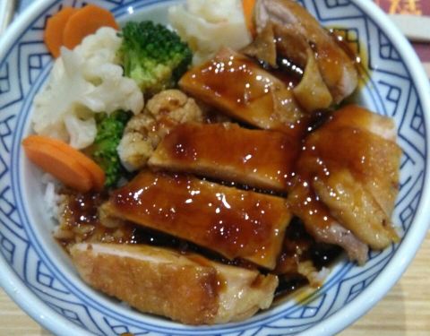 吉野家的老顾客了,吃了很多年。双拼饭是比较喜欢的,里面是照烧鸡肉饭和牛肉饭拼在一起的。照烧鸡,汤汁很浓,很稠。