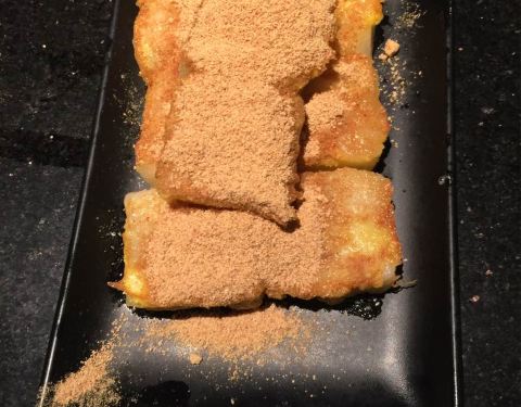 - 味道也不错,蛋煎糍粑口感很细腻,上面撒的应该是豆粉,感觉不像用蒸好的糯米饭打出来的,有点像糯米...