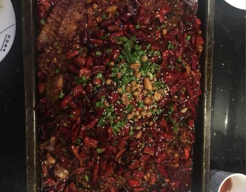 双椒味道的烤全鱼,蒜香味儿的,香辣味道的,黑椒味道的,都是经常点的。建议大家点清江鱼来吃,没有小毛刺,而且鱼肉肉质很嫩。