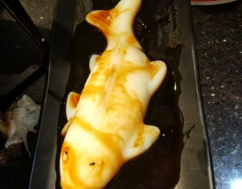 点了双拼烤鱼,香辣味和鸡汁杏鲍菇味正好一辣一鲜,不能再完美!宜宾凉糕做成了鱼的形状,不过建议红糖换成桂花蜂蜜,红糖口味稍微重了点。最后是黄金小土豆,也还不错,其实还点了一份蛋煎糍粑,非常惊艳的小吃...点了双拼烤鱼,香辣味和鸡汁杏鲍菇味正好一辣一鲜,不能再完美!宜宾凉糕做成了鱼的形状,不过建议红糖换成桂花蜂蜜,红糖口味稍微重了点。最后是黄金小土豆,也还不错,其实还点了一份蛋煎糍粑,非常惊艳的小吃,又香又糯,下次还会再点!