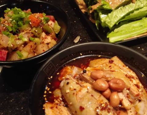 上地那边儿好馆子确实不多,这家江边城外好几年前我就来吃过了。这次和朋友吃饭,就选择了这里。口水鸡和川北凉粉对我来说都太辣了,不过朋友挺喜欢吃的。豆豉清江鱼很入味,往里面加了好多的蔬菜,不过到后面就特别咸了。一般吃烤鱼都是这个毛病,越吃越咸。服务还是不错的。