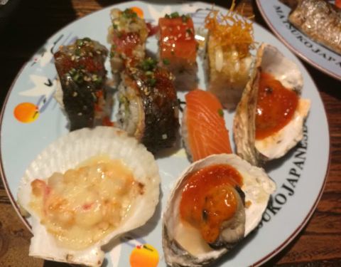 属于连锁,并有单点和自助两种方式的日料餐厅,环境和味道都属于中等水平。菜单种类也很丰富,除了刺身、手卷、寿司炒饭等常规菜品还有蒸物和煮物,选择上已经很多了。不过小料酱油比其他日料餐厅更咸一点 甜虾刺身:很新鲜,肉质较嫩 章鱼刺身:肉质稍微有点硬,块也有点大,整体毛病不大。 碳烤鳗鱼:做的很好吃,入味,鱼肉很嫩,外皮也处理的很好,158的价格对的起 鱼子蟹寿司:名字可能记得不准了,但是寿司鱼子并不多,味道也一般 盐烤生蚝:这种日式做法确实没有蒜烤生蚝入味,采用芝士盐烤,个人不喜欢这种做法 韩式小火锅:虽然是日本餐馆,韩式火锅也很正宗,大酱汤和辣白菜的味道融合的很好。