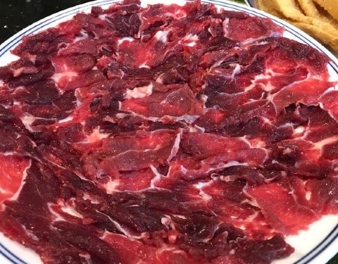 明档操作,见证厨师现切牛肉的精湛刀工。