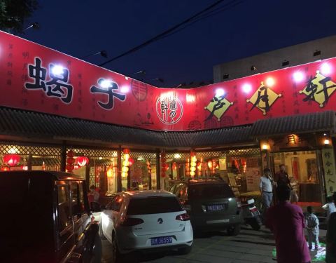 芦月轩羊蝎子———餐厅位于通州管庄一带,僻处于建筑材料研究院的院落里,路人不知,识者自来。我也是受人热荐,相约而来。到店时已经是晚八时,夜色笼罩了,但门前仍有排队等位的食客。店面红色基调,桌桌食客...