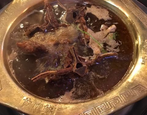 芦月轩羊蝎子———餐厅位于通州管庄一带,僻处于建筑材料研究院的院落里,路人不知,识者自来。我也是受人热荐,相约而来。到店时已经是晚八时,夜色笼罩了,但门前仍有排队等位的食客。店面红色基调,桌桌食客爆满,气氛热烈。热锅羊蝎子在京城流行,印象中大致始于90年代后期,不过本人无甚偏爱,甚至有些趋避之。大致羊蝎子店内,难免有膻气弥漫店内,让人难以久坐。但此店食客熙攘,大盘的羊蝎子在店内托来送去,却只闻羊肉鲜香,不闻膻腥气味,顿生好感和食欲。羊肉比猪肉肉质紧凑,比牛肉的动物纤维松软细致,如无膻腥气,是上好食材。中国人历史上喜食牛羊,趋避猪肉。先秦时期便以牛羊为尊贵食物。“天子食太牢,牛羊豕三牲俱全,诸侯食牛,卿食羊,大夫食豕,士食鱼炙,庶人食菜。”直到宋代,牛羊肉都是贵族化的食物。大概到了明清,中国人口暴增,食物偏好质量下降,主食在大米白面中掺进土豆玉米,肉质从牛羊转而趋向猪肉。以至于像我之辈的今人,食猪肉为常,却以牛羊为转换口味的替代肉质了。鲜香柔美的羊腔骨肉,配以小酒数杯,驱除疲劳,放松心情,还少许改变了自己对京城流行食品羊蝎子的成见,不错的一顿晚餐体验。此店应该还会再来,不过最好是在入冬以后的某个飘雪之日。好食物都是有时令的。羊肉与我的相约佳期,大约在冬季。