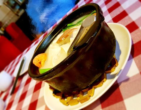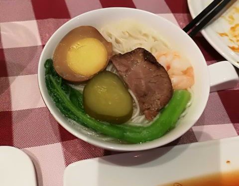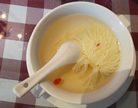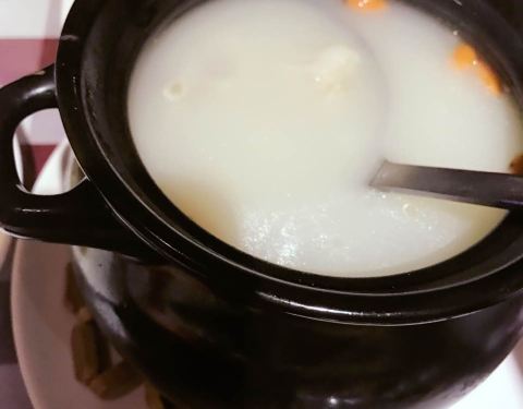 除了我们点的生煎菜肉包比较大,每份菜量和主食的量比较小;除了鲜虾笋汤和滋补羊排的汤味道不错,其他菜味道一般,尤其是鹅块主要是皮和骨头,没有多少肉;菜陆续上的,肉菜上得超级慢。各菜的优点是少盐。