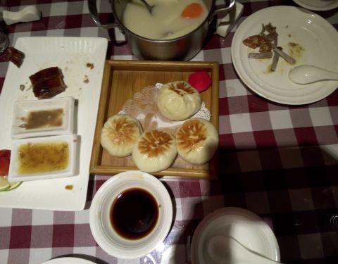 - 菜陆续上的,肉菜上得超级慢。除了我们点的生煎菜肉包比较大,每份菜量和主食的量比较小