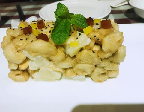 - 菜品味道还可以,就是吧,价格有些贵,有一个做成树一样的甜点特别好吃