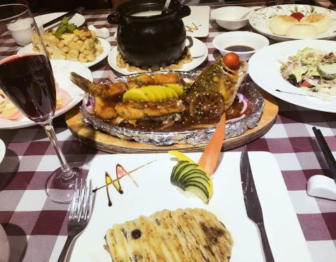 中午去的,有演出,可以一边吃饭一边看演出,但我真没觉得唱得多好。菜品味道还可以,就是吧,价格有些贵,有一个做成树一样的甜点特别好吃。