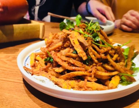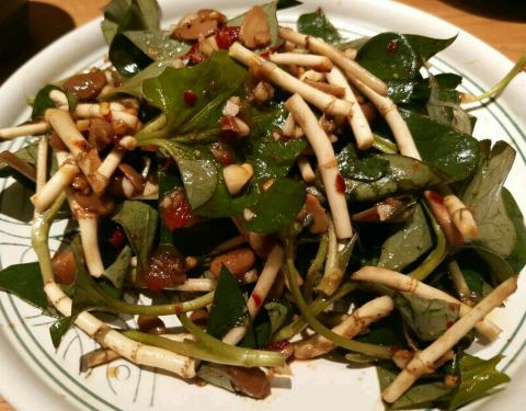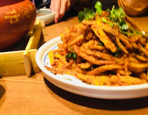 气锅鸡是云海肴必点,一鸡两吃。两个锅,一个是鸡汤,鸡汤很好喝。旁边盘子里放着豆芽,鸡肉可以从汤里捞出来放进豆芽淋上酱汁吃。折耳根拌的还是可以的,但是没有云南的辣。