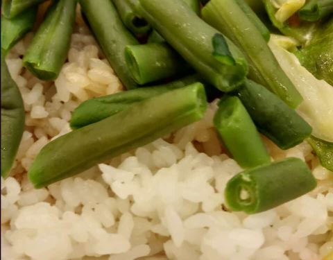 - 给换了一份饭,你倒是收拾一下啊,还不如第一份。米饭都已经风干了,真是开玩笑。飘着一层油,还有勺子