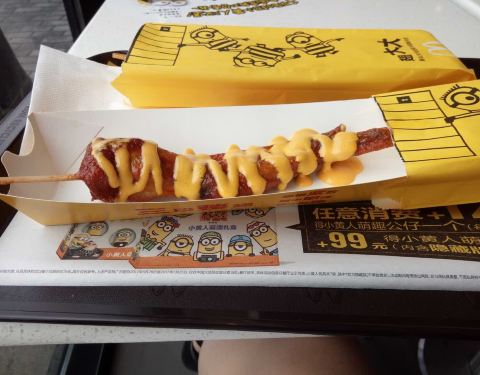 刚开始买的香蕉派,和鸡块。没有吃饱,但是很好吃。现在又想来尝一下大鸡翅,也是很棒很棒的☺今天天气不好,人还是不少的