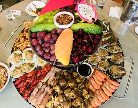 - 但一如既往的是各种海鲜保持新鲜,我们去了四个人,一直吃的是蒸海鲜,比烤的更美味